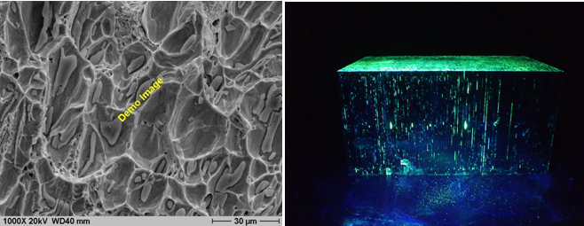 1.合金中夾雜物的圖像2.磁性粒子無損檢測突出顯示的“嚴重”夾雜物的圖像